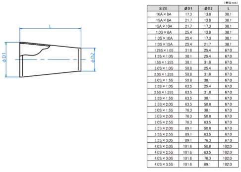 | Kích thước giảm | 10Ax8A, 15Ax8A, 15Ax10A, 1.0Sx8A, 1.0Sx10A, 1.0Sx15A, 1.25Sx1.0S, 1.5Sx1.0S, 1.5Sx1.25S, 2.0Sx1.0S, 2.0Sx1.25S, 2.0Sx1.5S, 2.5Sx1.0S, 2.5Sx1.25S, 2.5Sx1.5S, 2.5Sx2.0S, 3.0Sx1.0S, 3.0Sx1.25S, 3.0Sx1.5S, 3.0Sx2.0S, 3.0Sx2.5S, 3.5Sx1.0S, 3.5Sx1.25S, 3.5Sx1.5S, 3.5Sx2.0S, 3.5Sx2.5S, 3.5Sx3.0S, 4.0Sx1.0S, 4.0Sx1.25S, 4.0Sx1.5S, 4.0Sx2.0S, 4.0Sx2.5S, 4.0Sx3.0S, 4.0Sx3.5S |